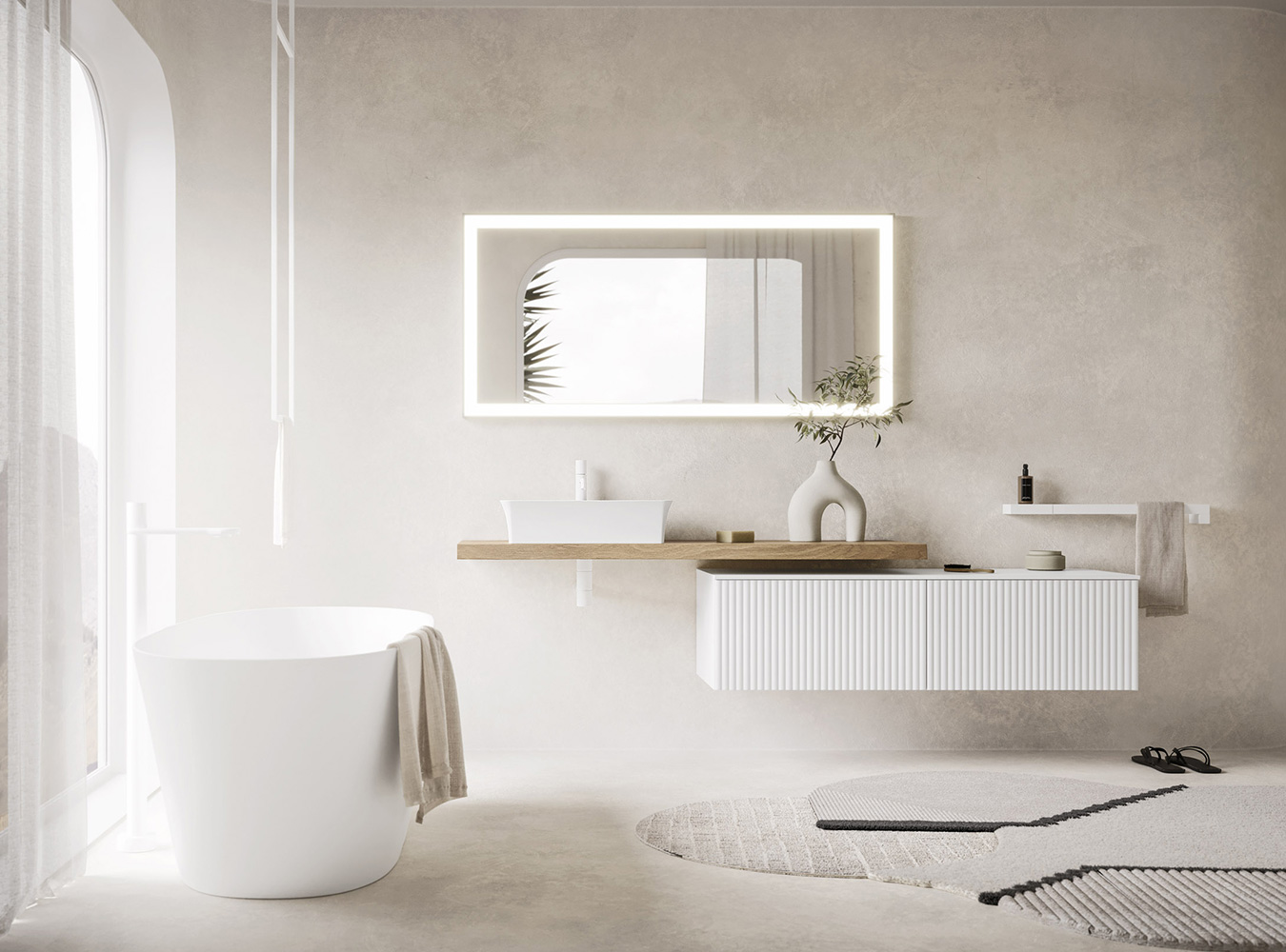 Serigrafia H5cm su specchio / Luce Led perimetrale frontale di serie