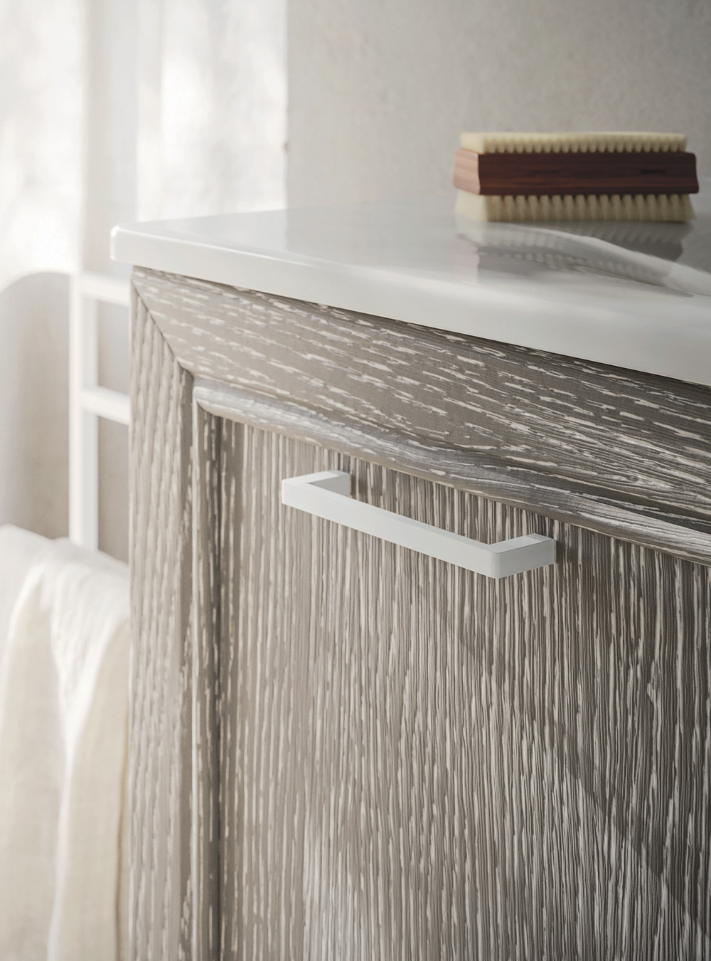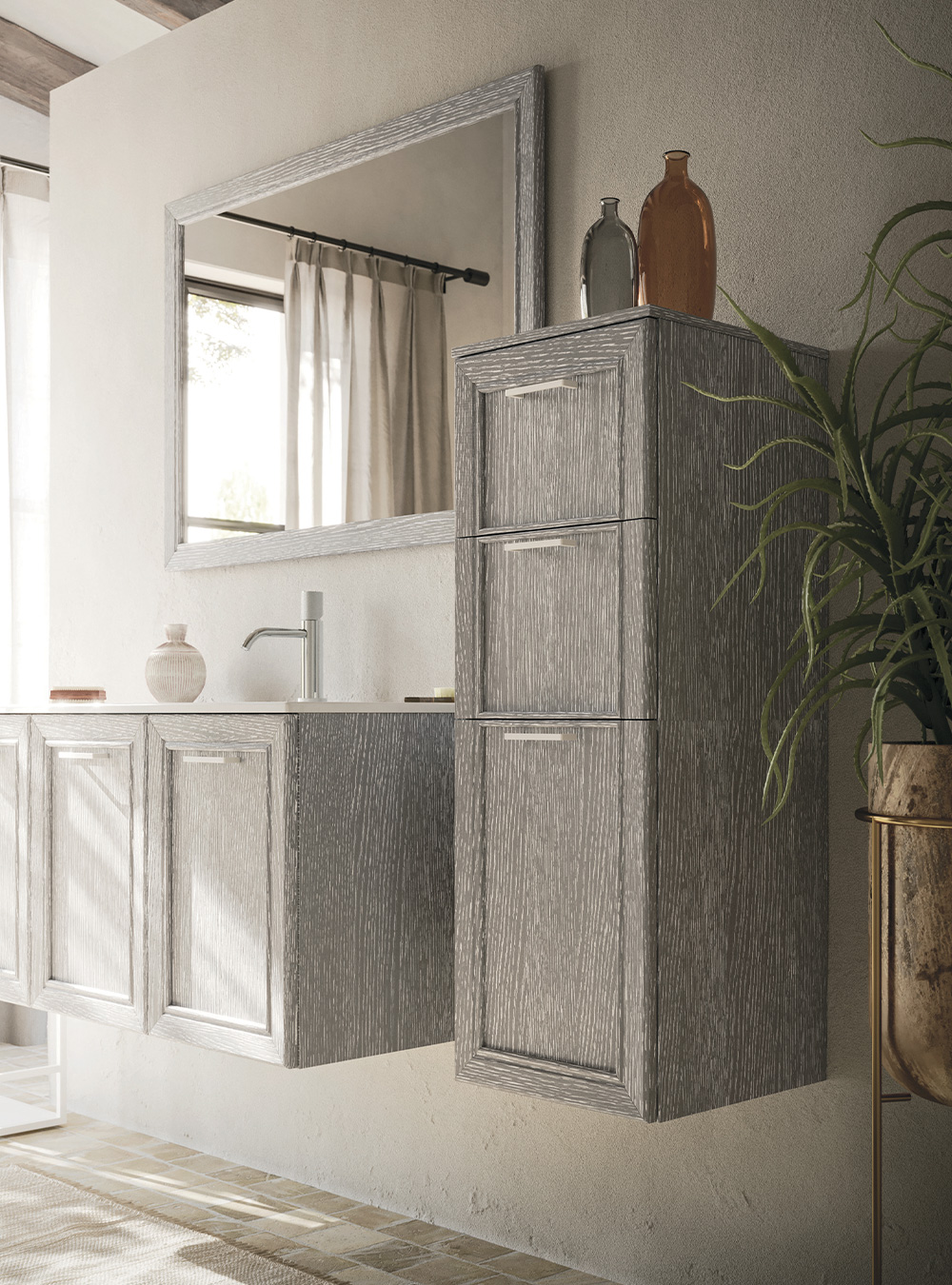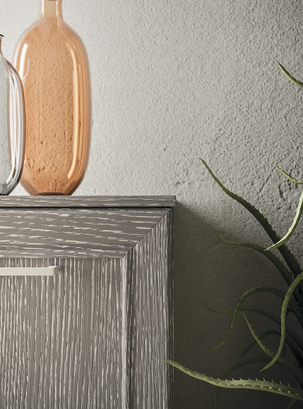 La tradizione anta a telaio in legno massello, protagonista di memorie famigliari, situazioni intime e accoglienti, emozioni calde e naturali, viene interpretata alla luce di moderna sensibilità e versatilità compositiva. Dalle forme più lineari a quelle più raffinate, con volumi sospesi oppure su gambe o piedini, in una gamma estremamente ampia di colori e finiture per il rovere: l’essenza dell’eleganza.