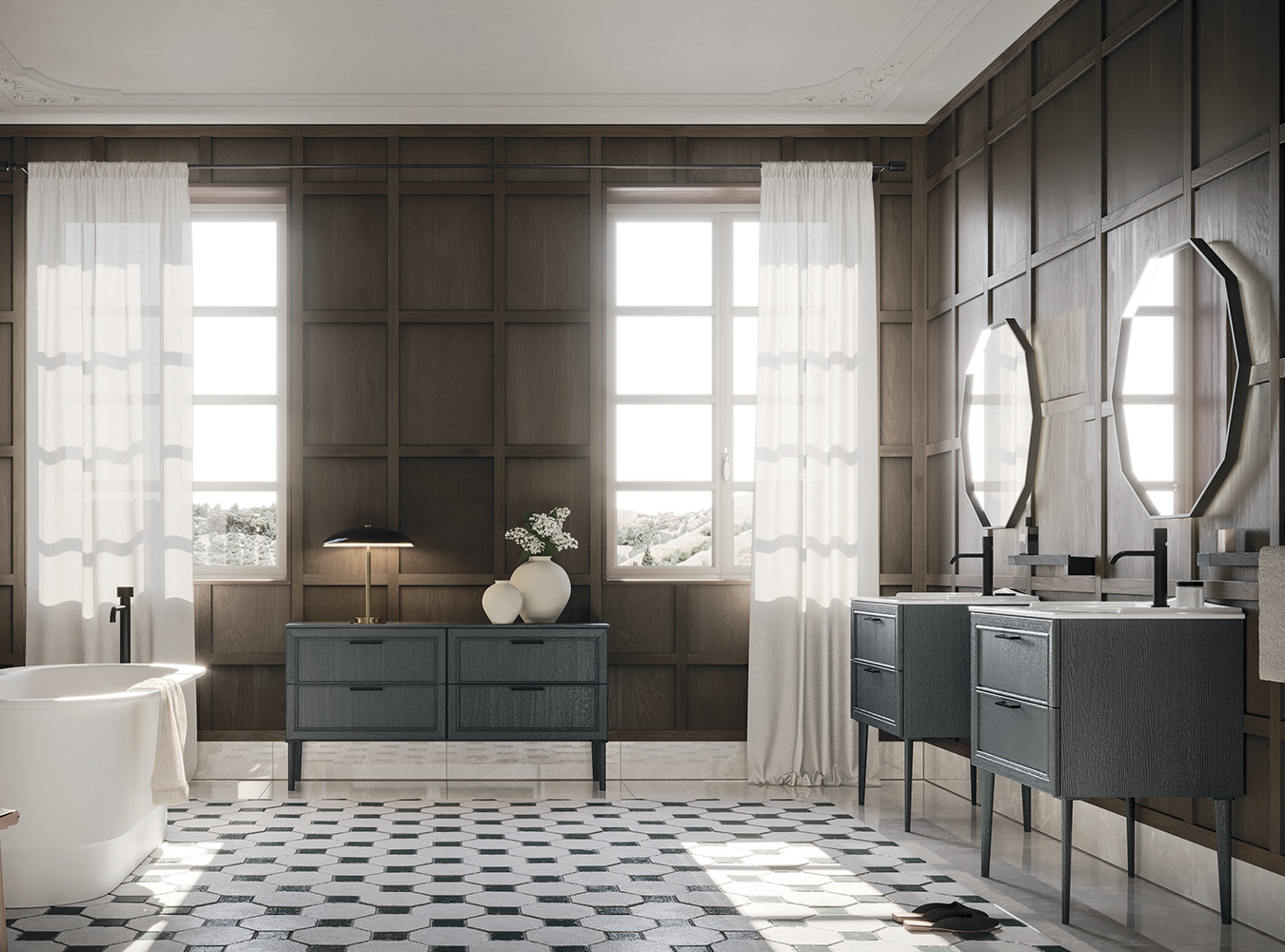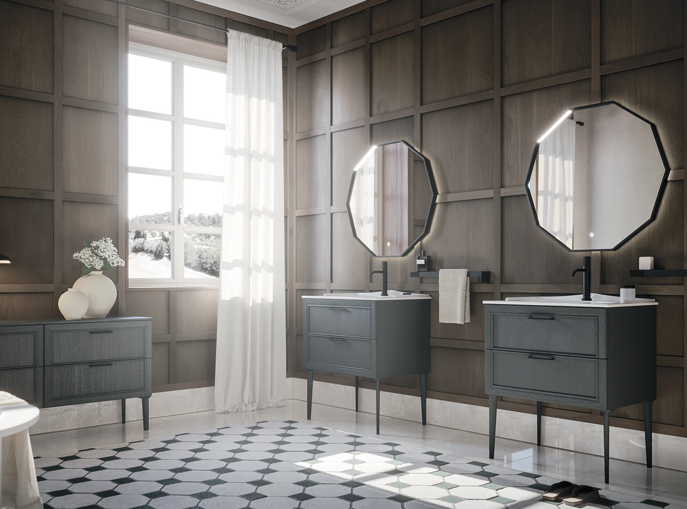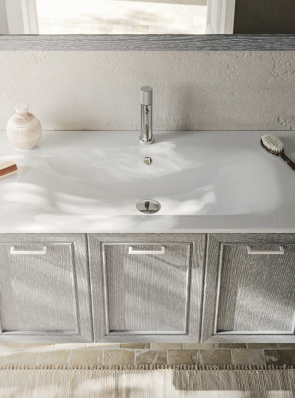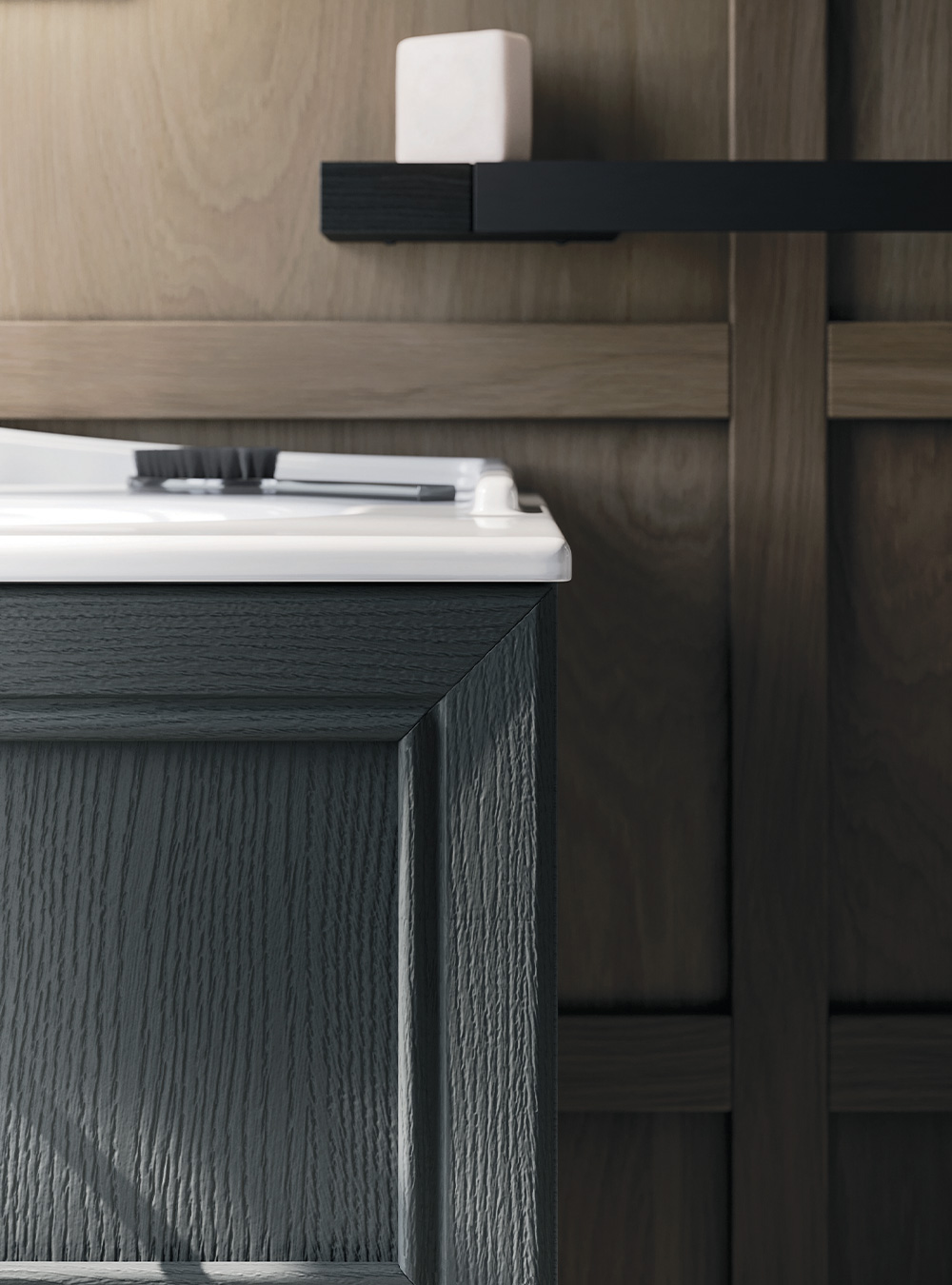 La tradizione anta a telaio in legno massello, protagonista di memorie famigliari, situazioni intime e accoglienti, emozioni calde e naturali, viene interpretata alla luce di moderna sensibilità e versatilità compositiva. Dalle forme più lineari a quelle più raffinate, con volumi sospesi oppure su gambe o piedini, in una gamma estremamente ampia di colori e finiture per il rovere: l’essenza dell’eleganza.