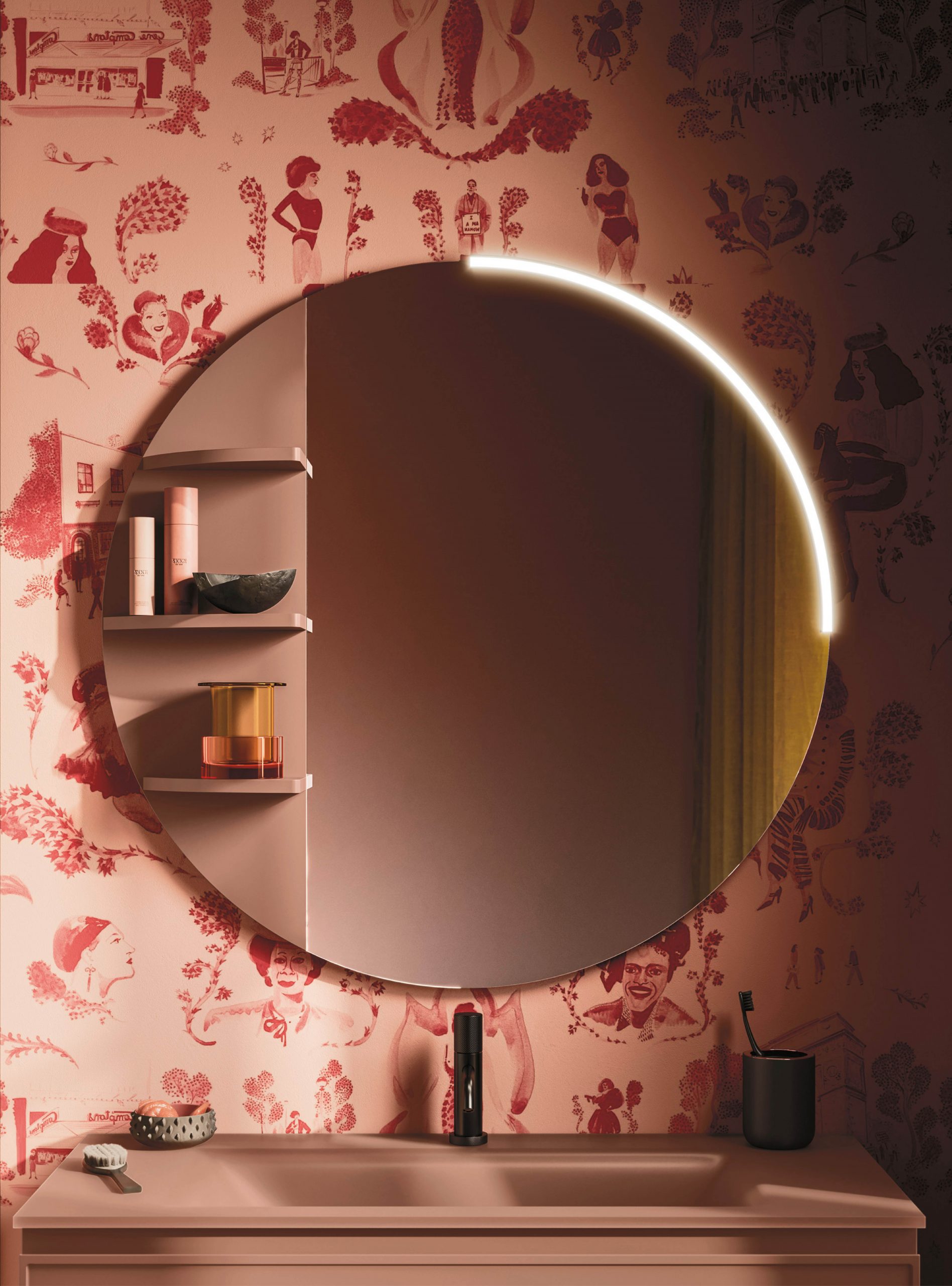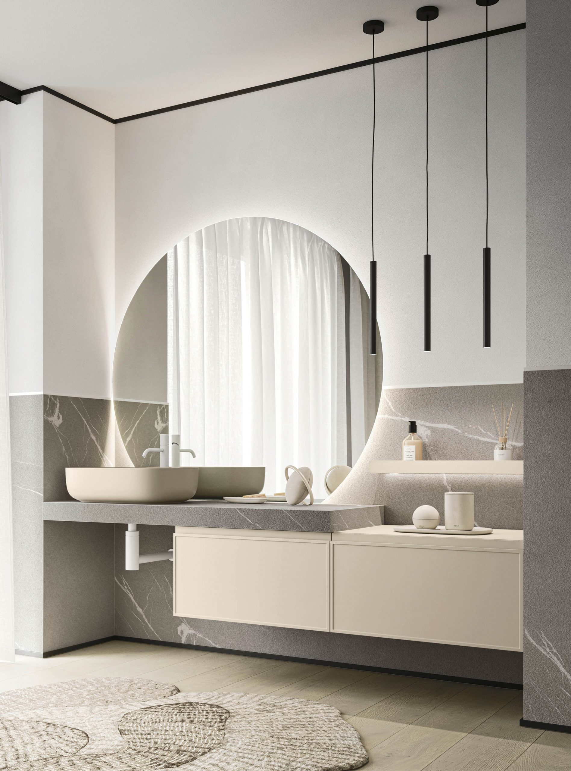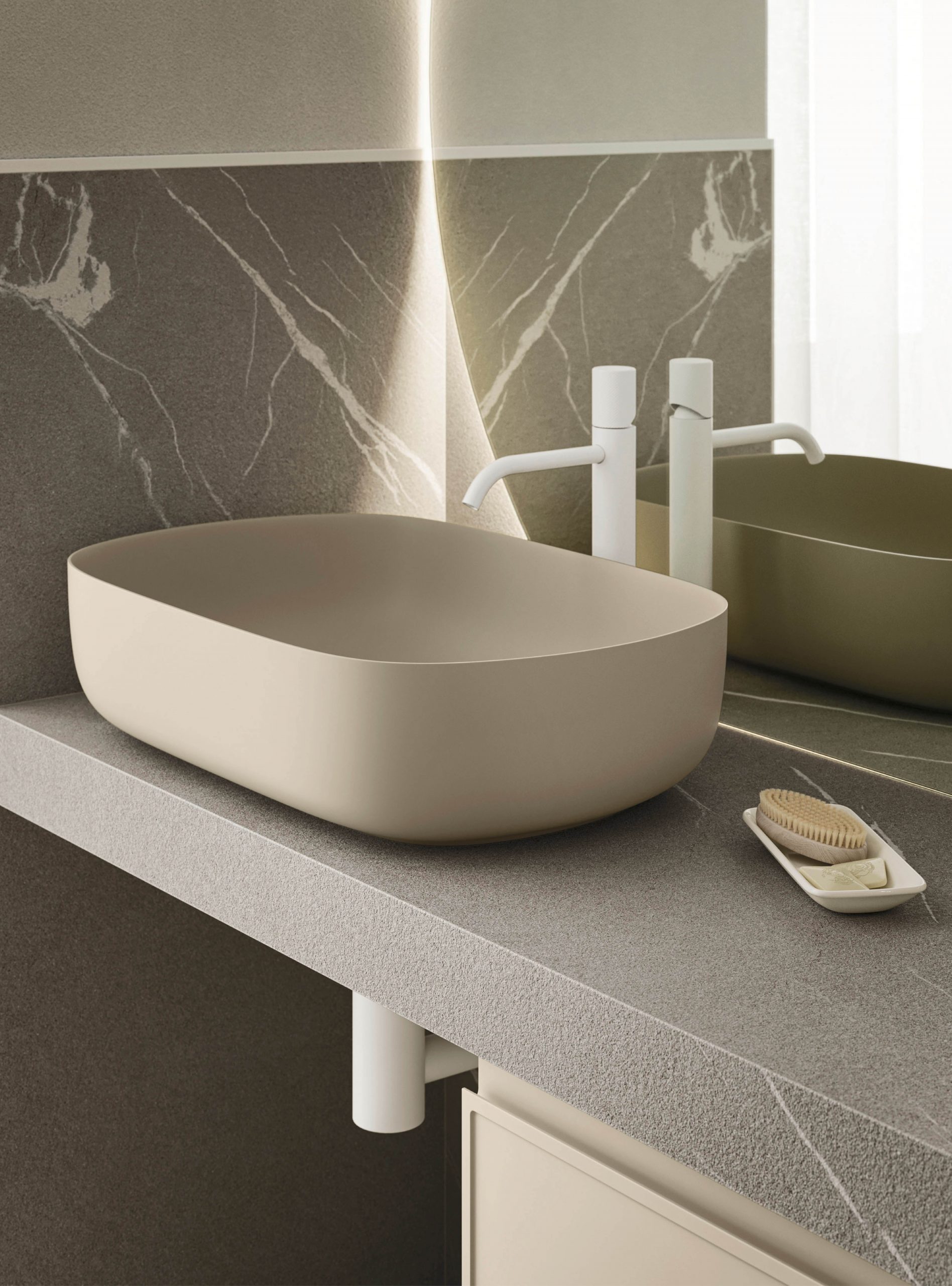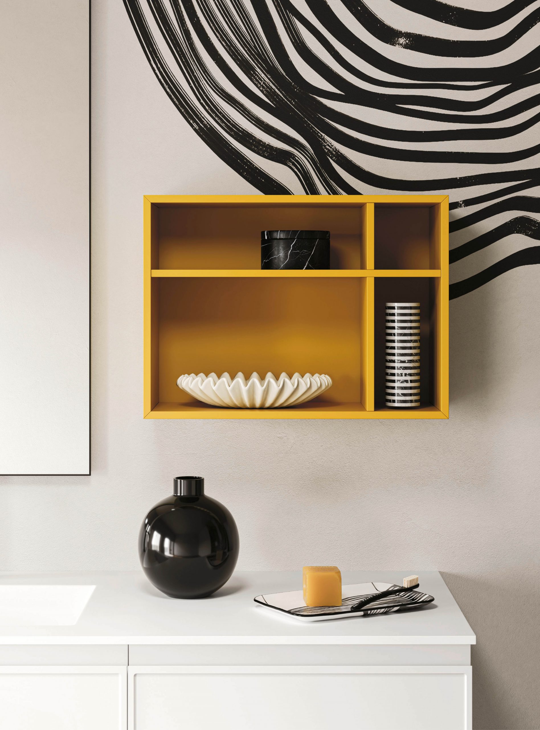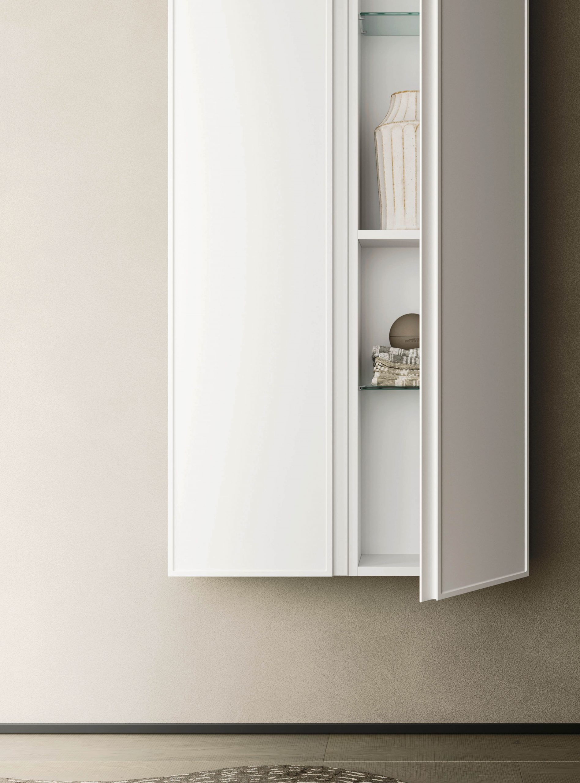 Il modello Decor amplia la nuova collezione di mobili Arbi con anta integrata e si presenta con presa maniglia J. Il particolare decoro sul frontale rende prestigioso l’arredamento infondendo un tocco di originale raffinatezza a tutto l’ambiente bagno.