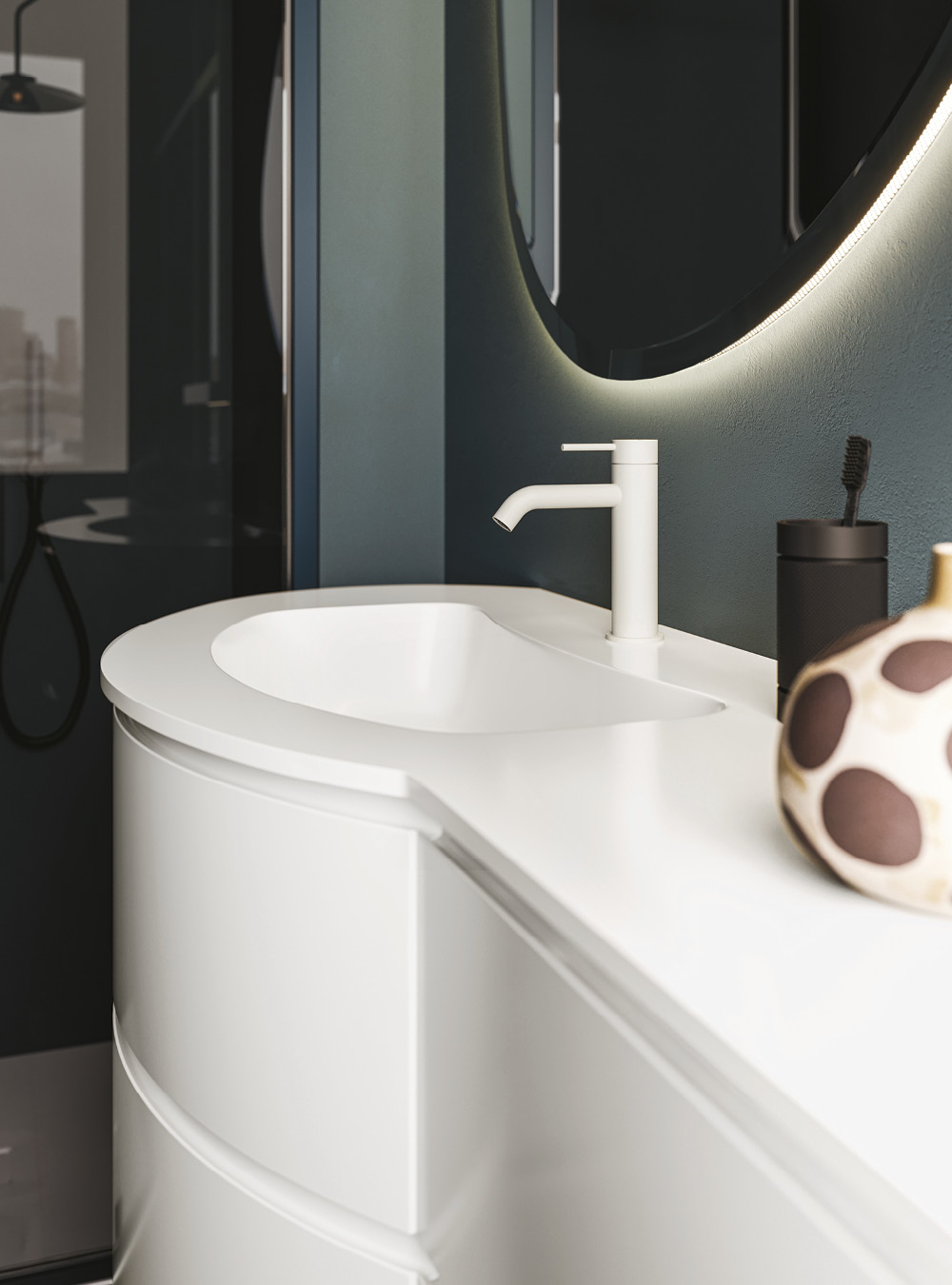 Fusion trova nella linea curva il proprio segno caratteristico: una collezione di mobili di design che accosta i volumi morbidi delle basi alle rigide geometrie delle colonne e dei vani a giorno. Disponibile nella nuova variante MOBY, caratterizzata dalla particolare maniglia, la collezione crea un inedito equilibrio nella stanza da bagno, grazie alle forme morbide e ai raffinati accostamenti. Arredi bagno pratici e funzionali che formano un’atmosfera accogliente e rasserenante, adattandosi perfettamente a ogni stile e personalità.