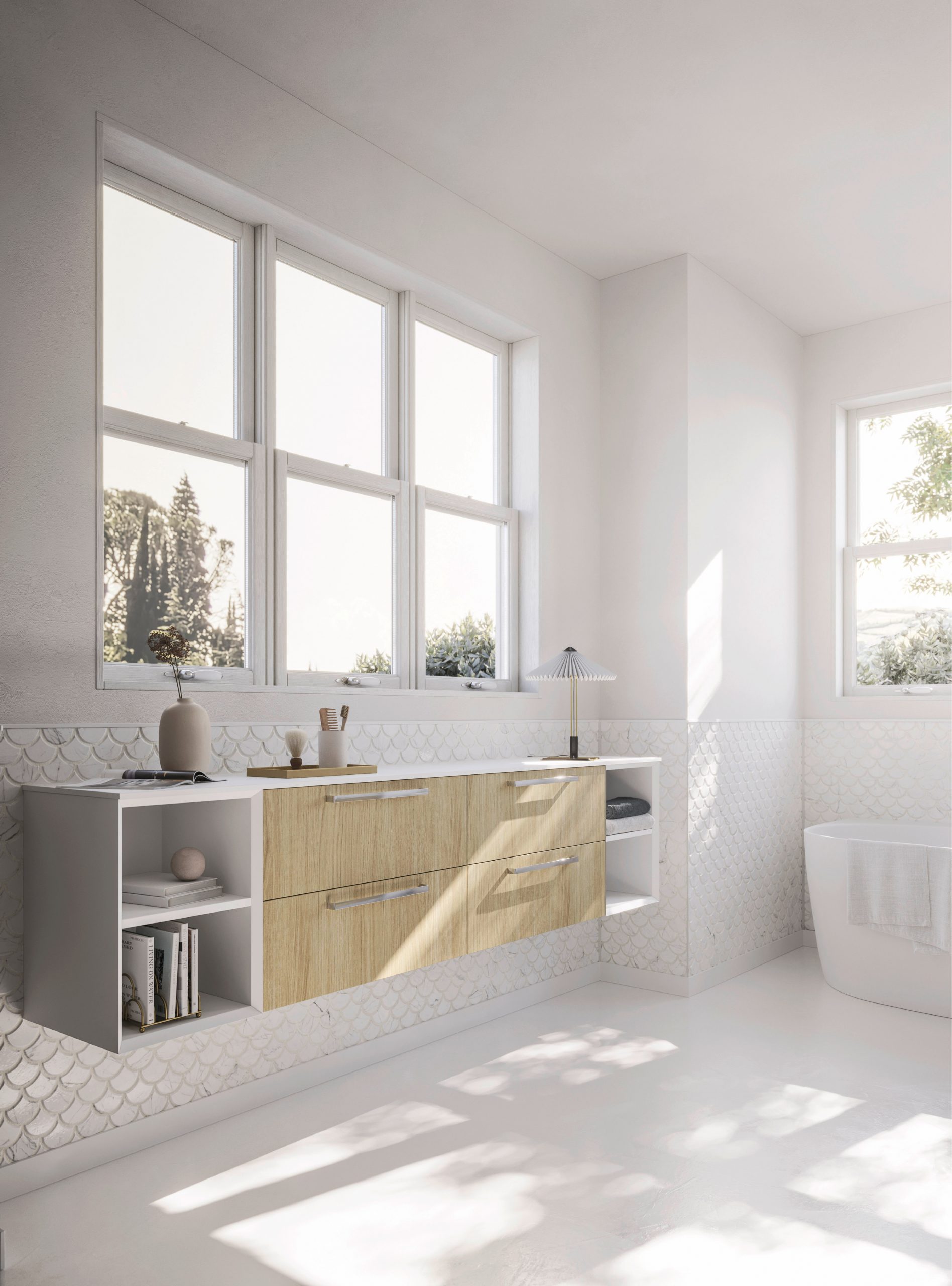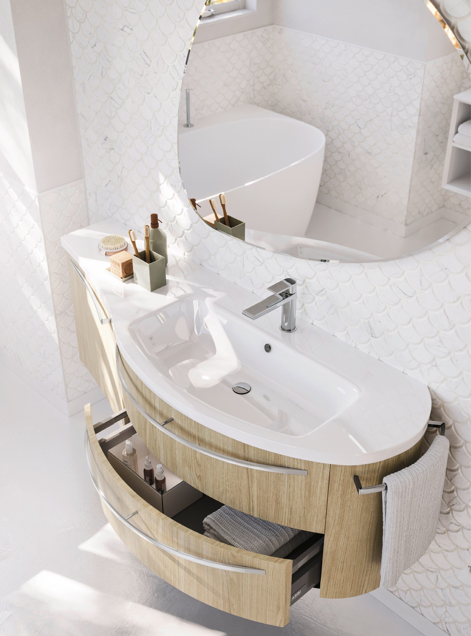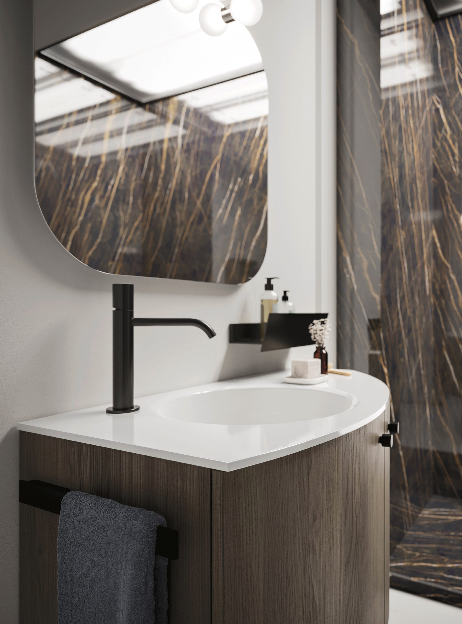 ho.me plus curvo: l’arredo bagno di tendenza in melaminico termostrutturato