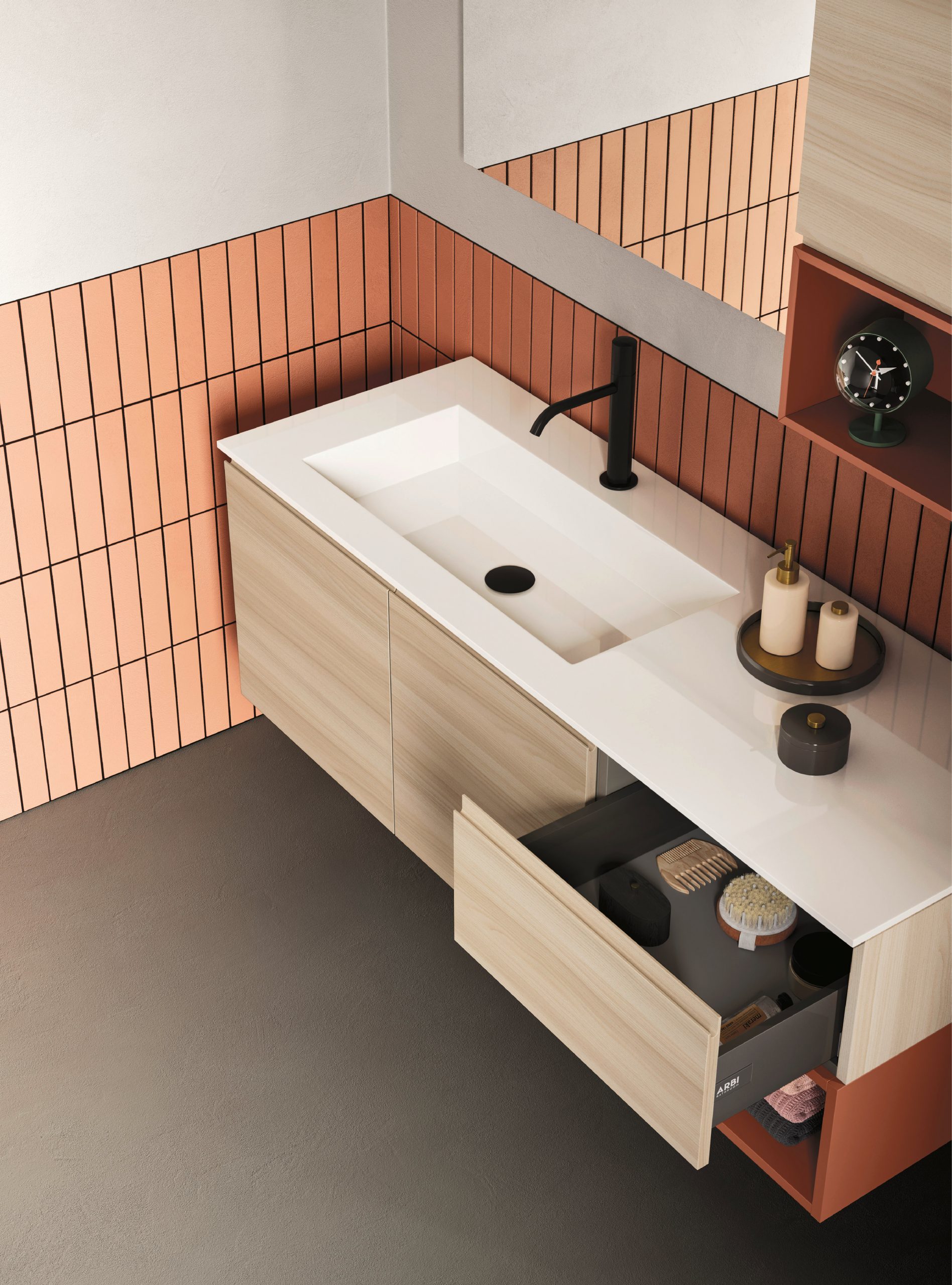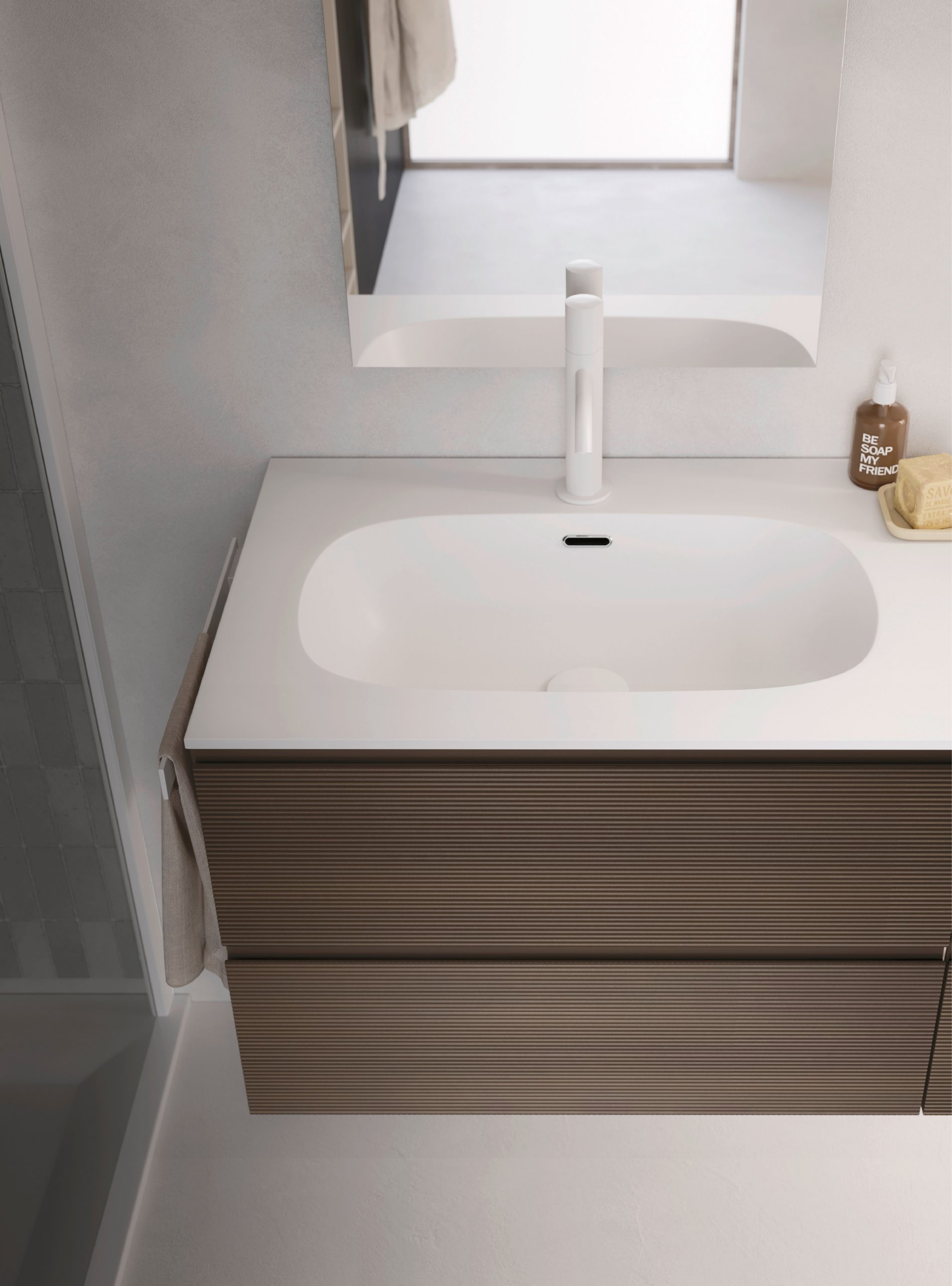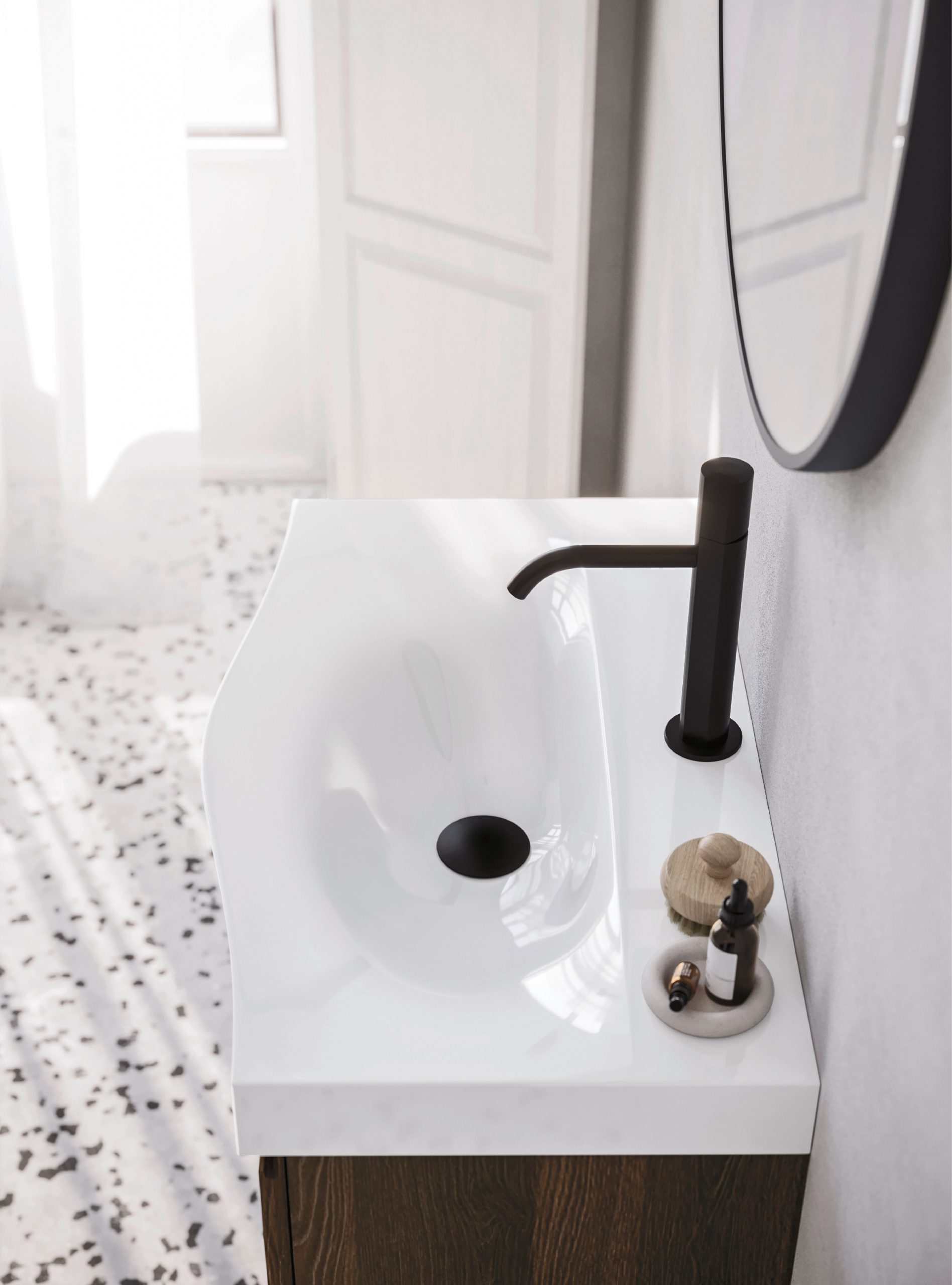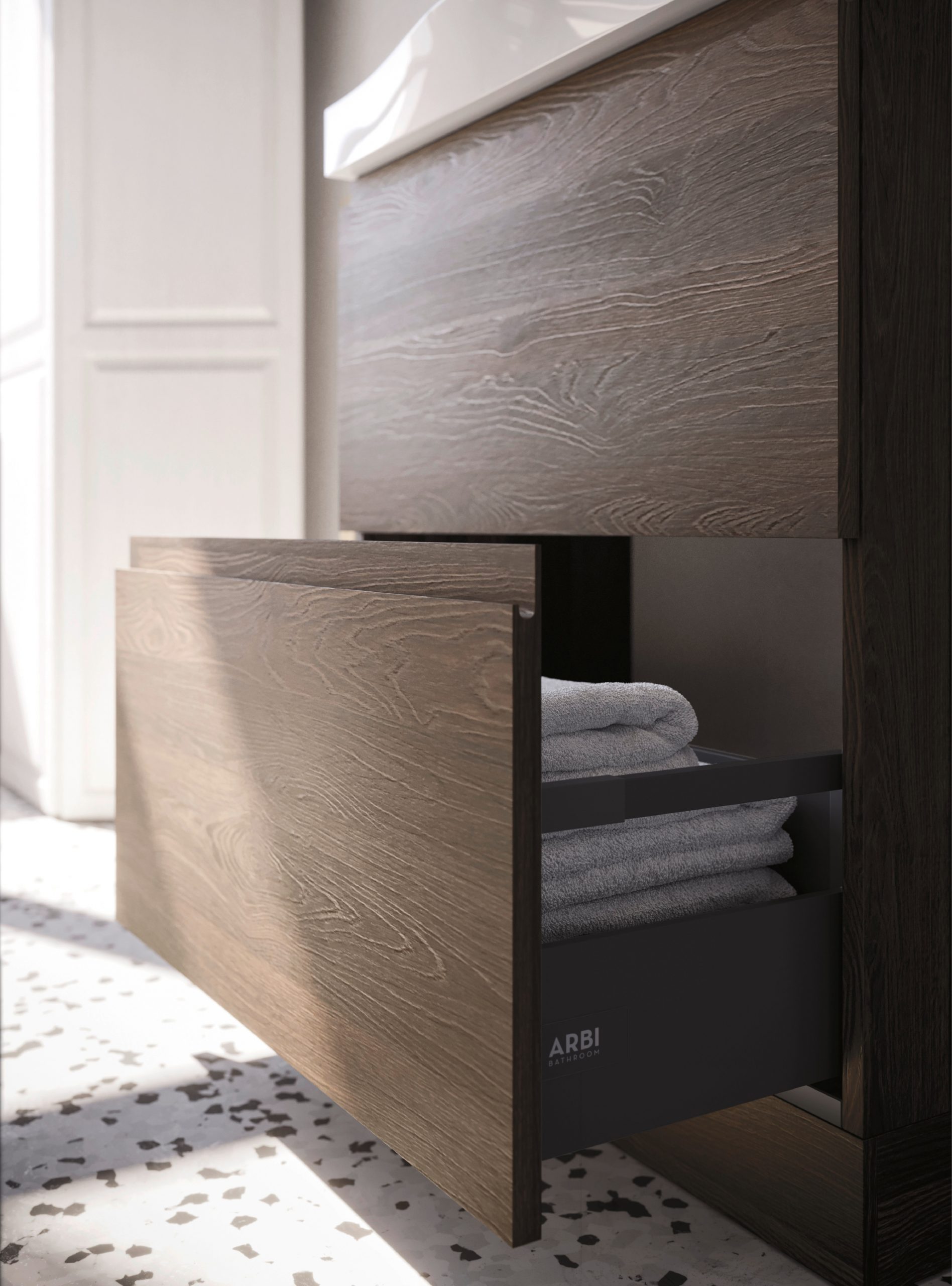 Ho.Me Plus è un’inedita collezione firmata Arbi Arredobagno che raccoglie una vasta gamma di finiture in melaminico termostrutturato dalle venature naturali, ai colori classici o di tendenza. Trasversale nello stile, ho.me plus è disponibile in due varianti: una con anta con maniglia, l’altra con presa maniglia “J” integrata. Flessibile nell’ambientazione grazie alla scelta fra tre profondità e diverse larghezze, la collezione è arricchita dalla versione curva, che propone basi dalle linee morbide per soddisfare anche le esigenze di ottimizzazione degli spazi più ristretti.