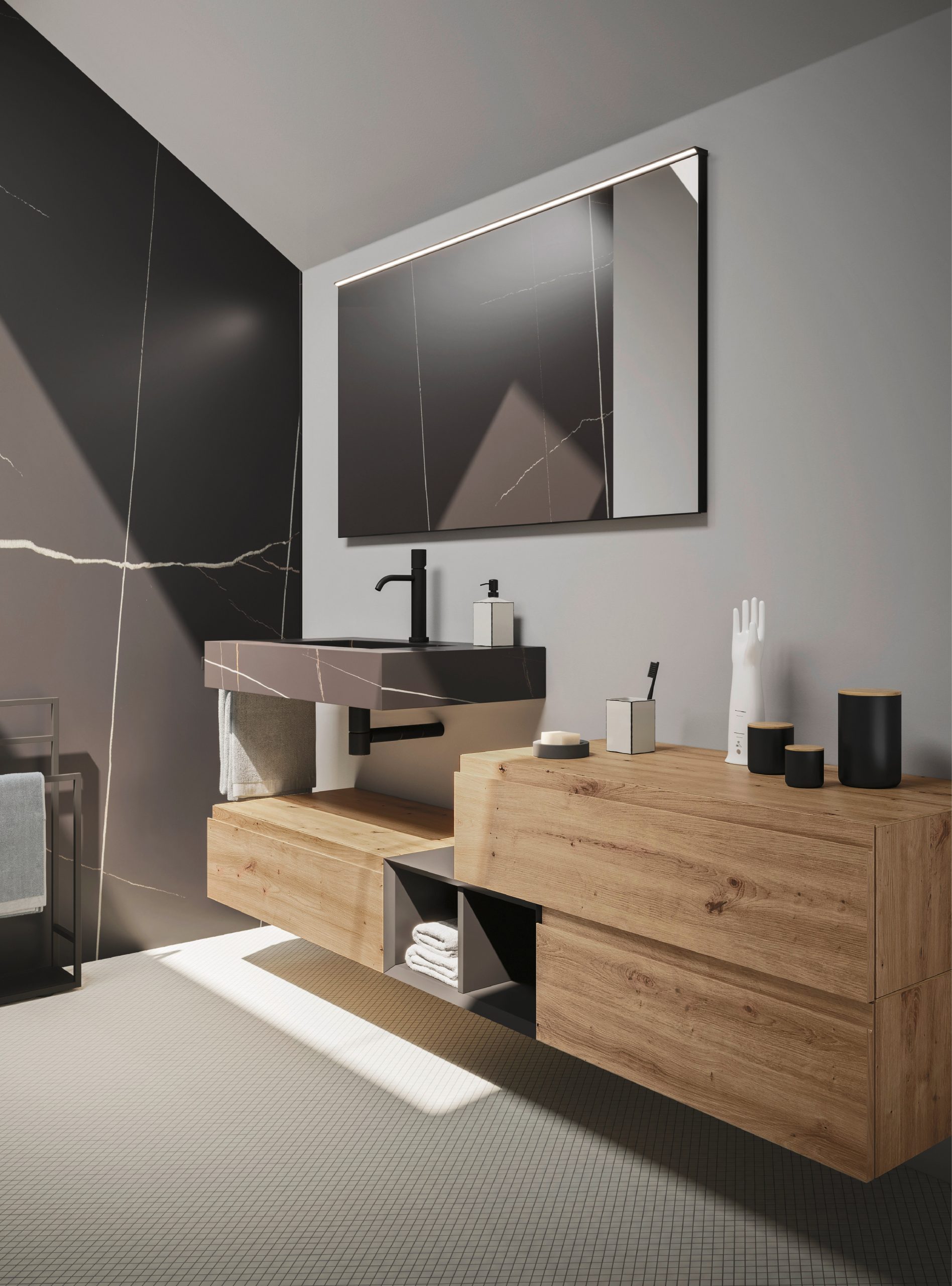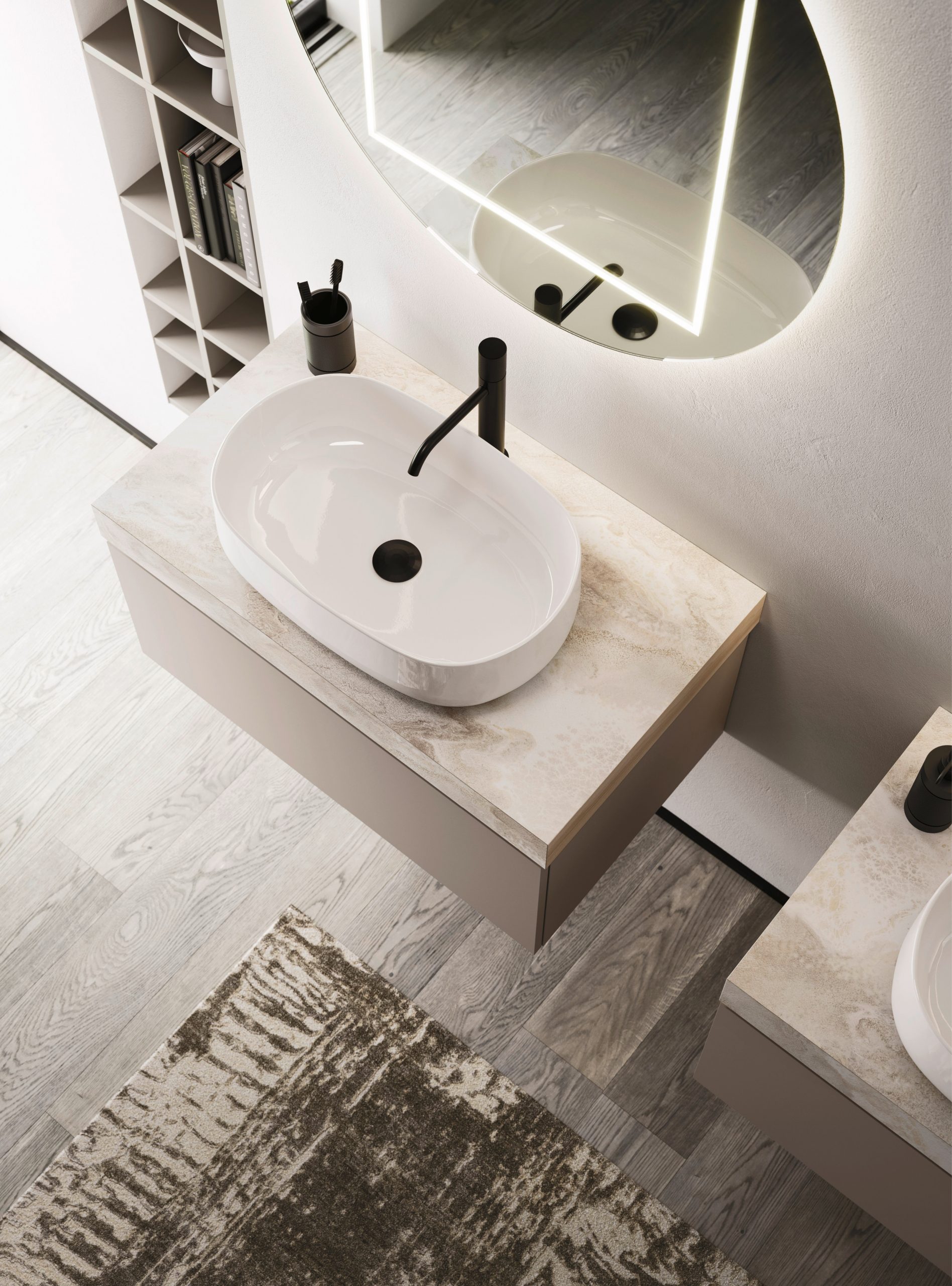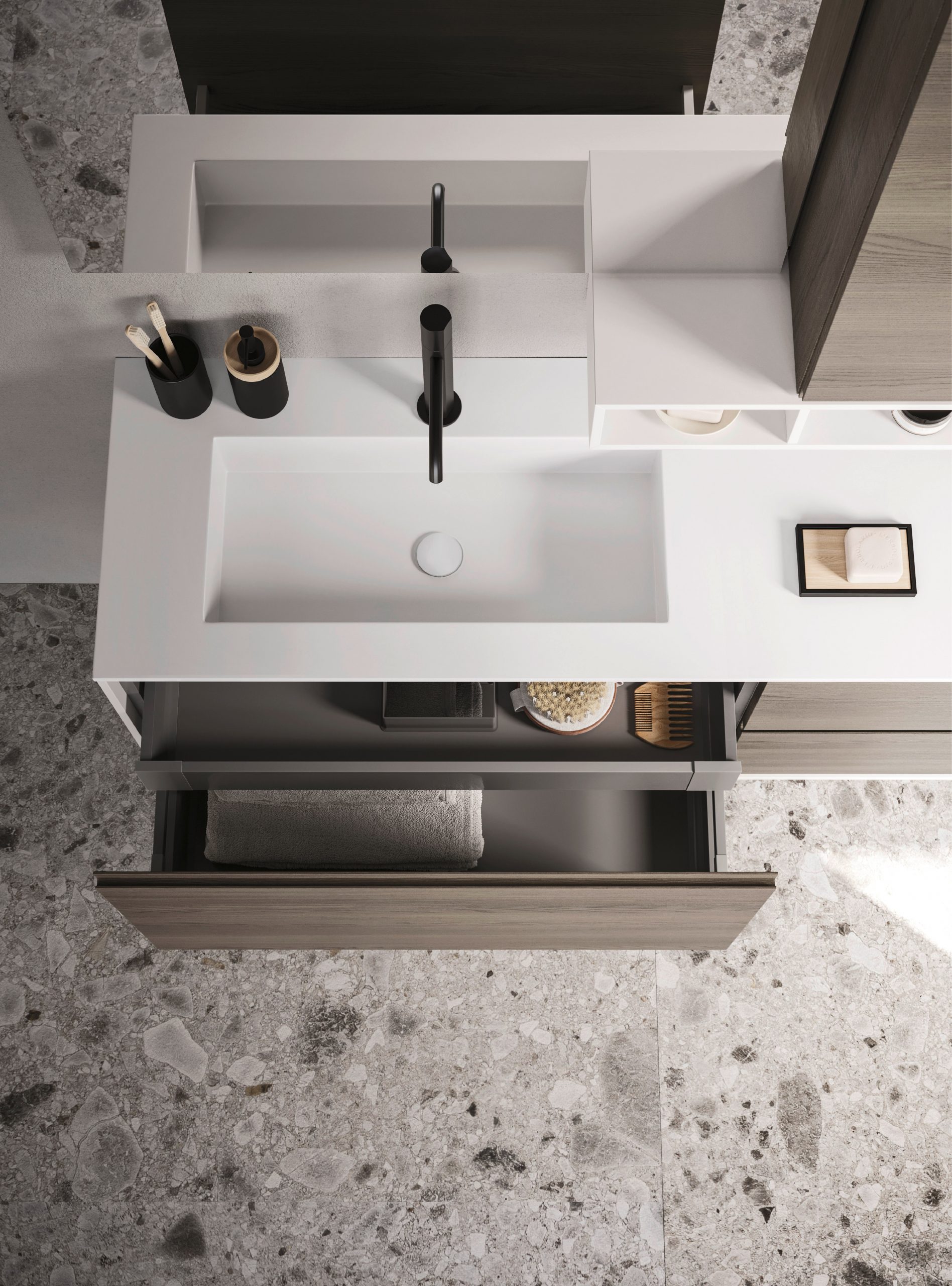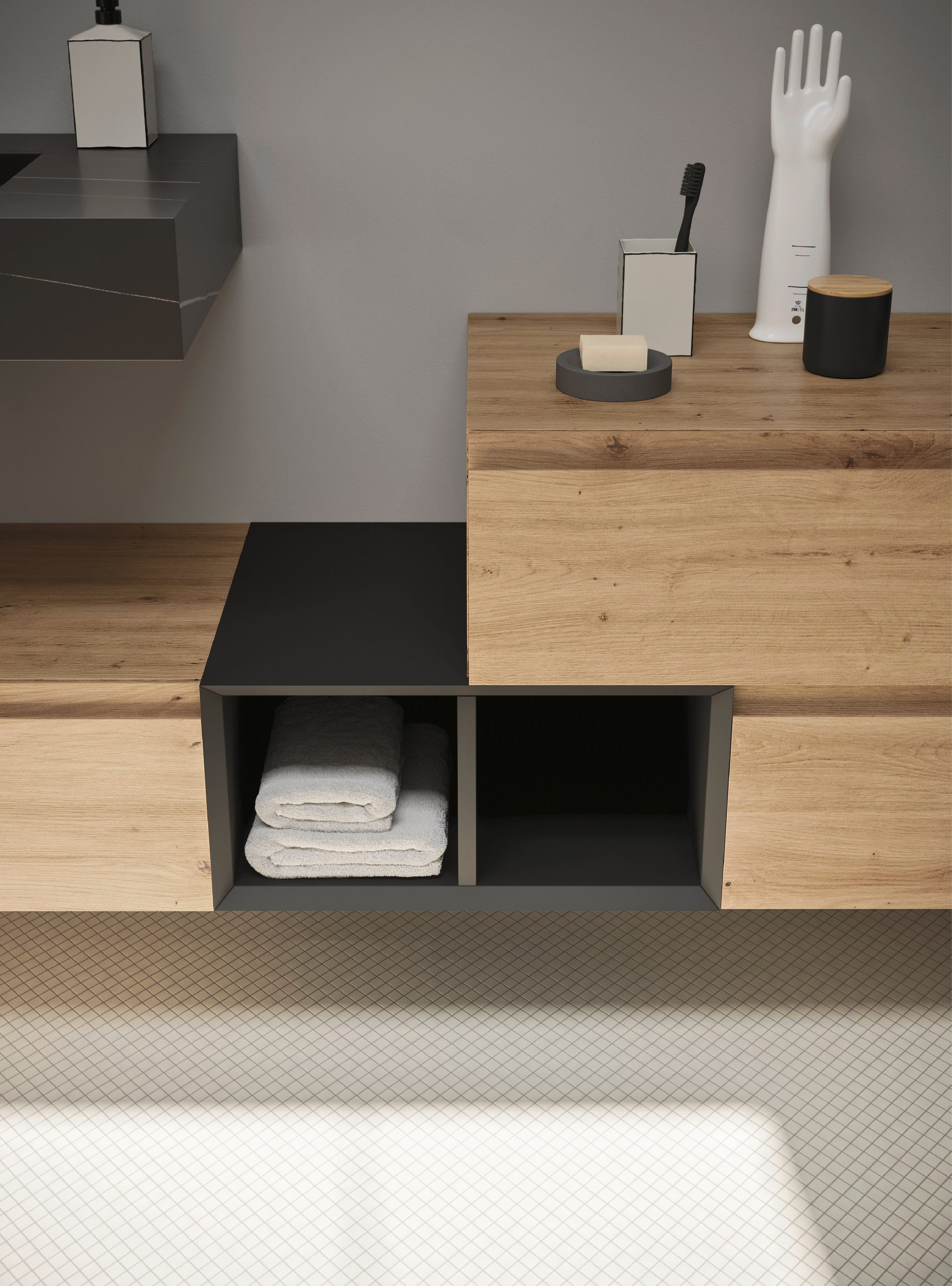 Ho.Me Plus è un’inedita collezione firmata Arbi Arredobagno che raccoglie una vasta gamma di finiture in melaminico termostrutturato dalle venature naturali, ai colori classici o di tendenza. Trasversale nello stile, ho.me plus è disponibile in due varianti: una con anta con maniglia, l’altra con presa maniglia “J” integrata. Flessibile nell’ambientazione grazie alla scelta fra tre profondità e diverse larghezze, la collezione è arricchita dalla versione curva, che propone basi dalle linee morbide per soddisfare anche le esigenze di ottimizzazione degli spazi più ristretti.
