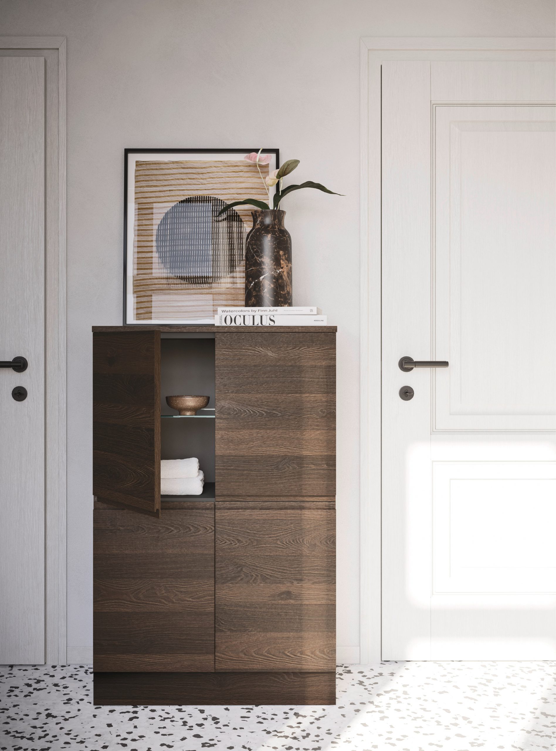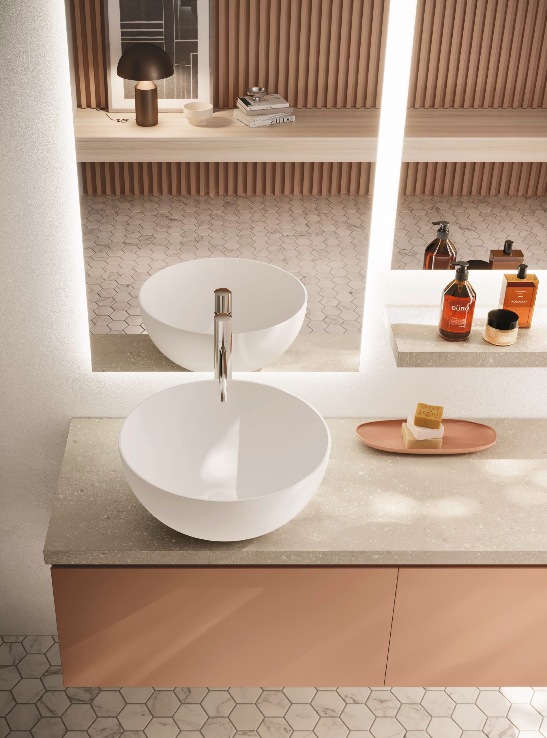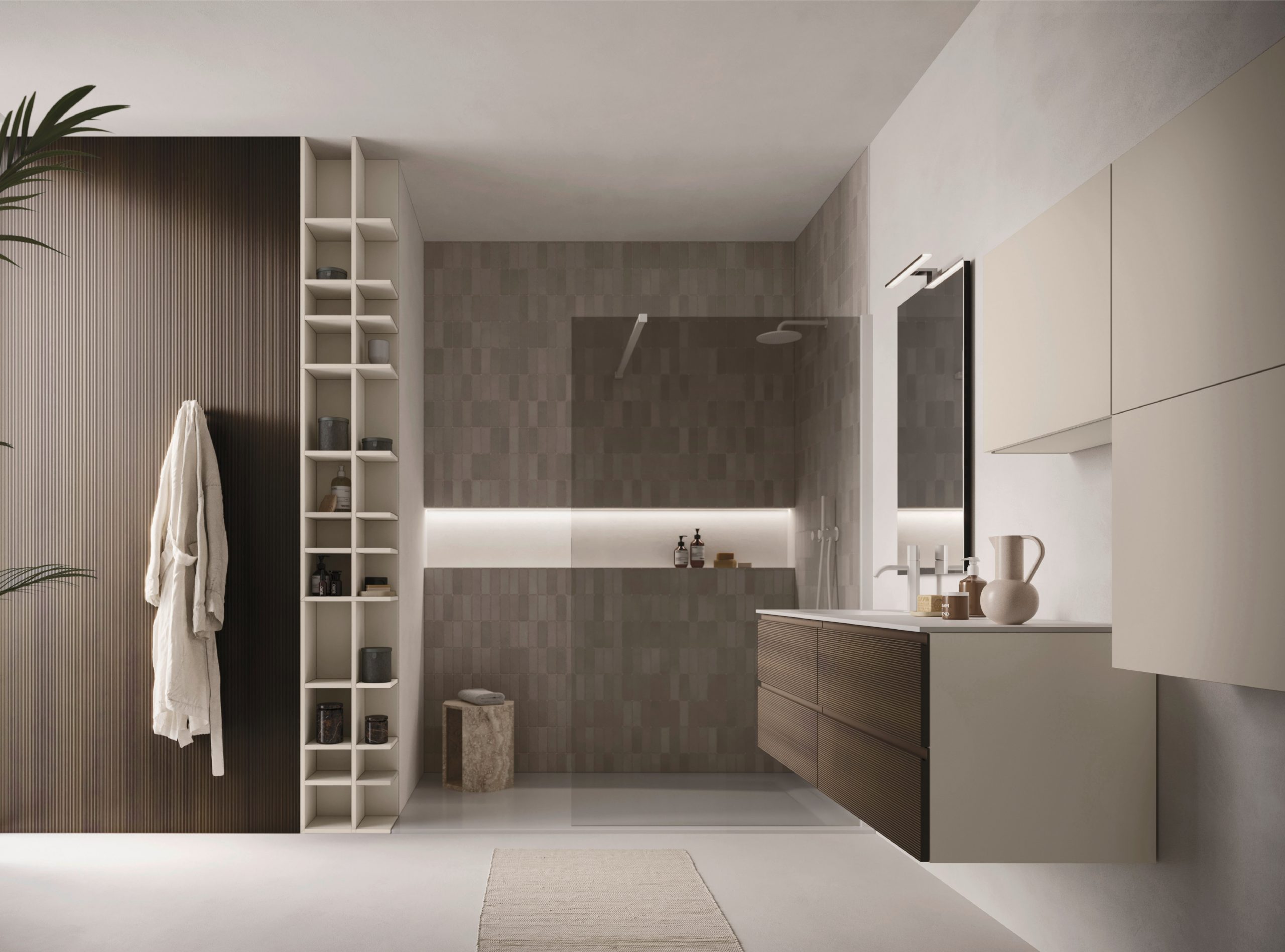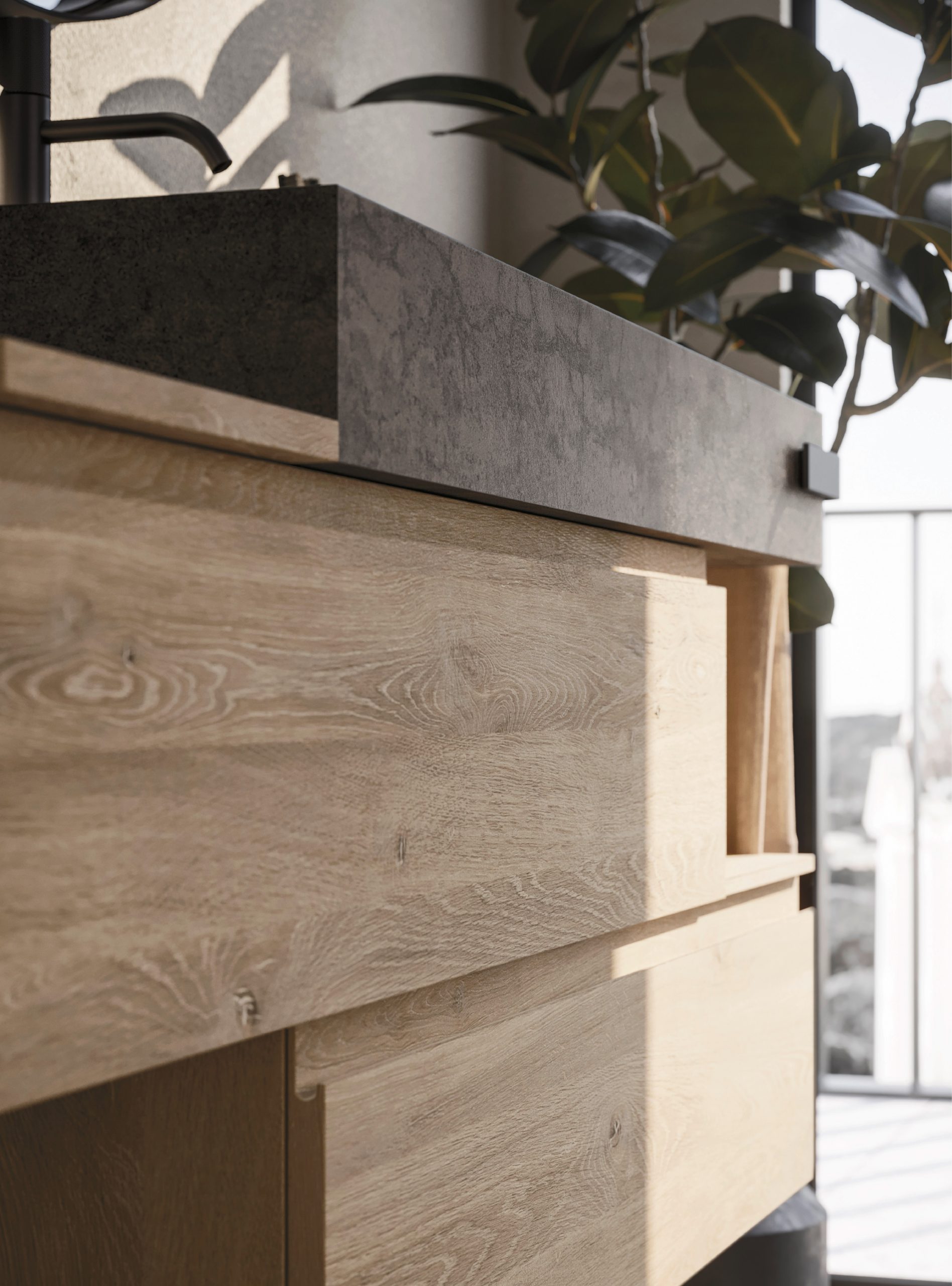 Ho.Me Plus è un’inedita collezione firmata Arbi Arredobagno che raccoglie una vasta gamma di finiture in melaminico termostrutturato dalle venature naturali, ai colori classici o di tendenza. Trasversale nello stile, ho.me plus è disponibile in due varianti: una con anta con maniglia, l’altra con presa maniglia “J” integrata. Flessibile nell’ambientazione grazie alla scelta fra tre profondità e diverse larghezze, la collezione è arricchita dalla versione curva, che propone basi dalle linee morbide per soddisfare anche le esigenze di ottimizzazione degli spazi più ristretti.