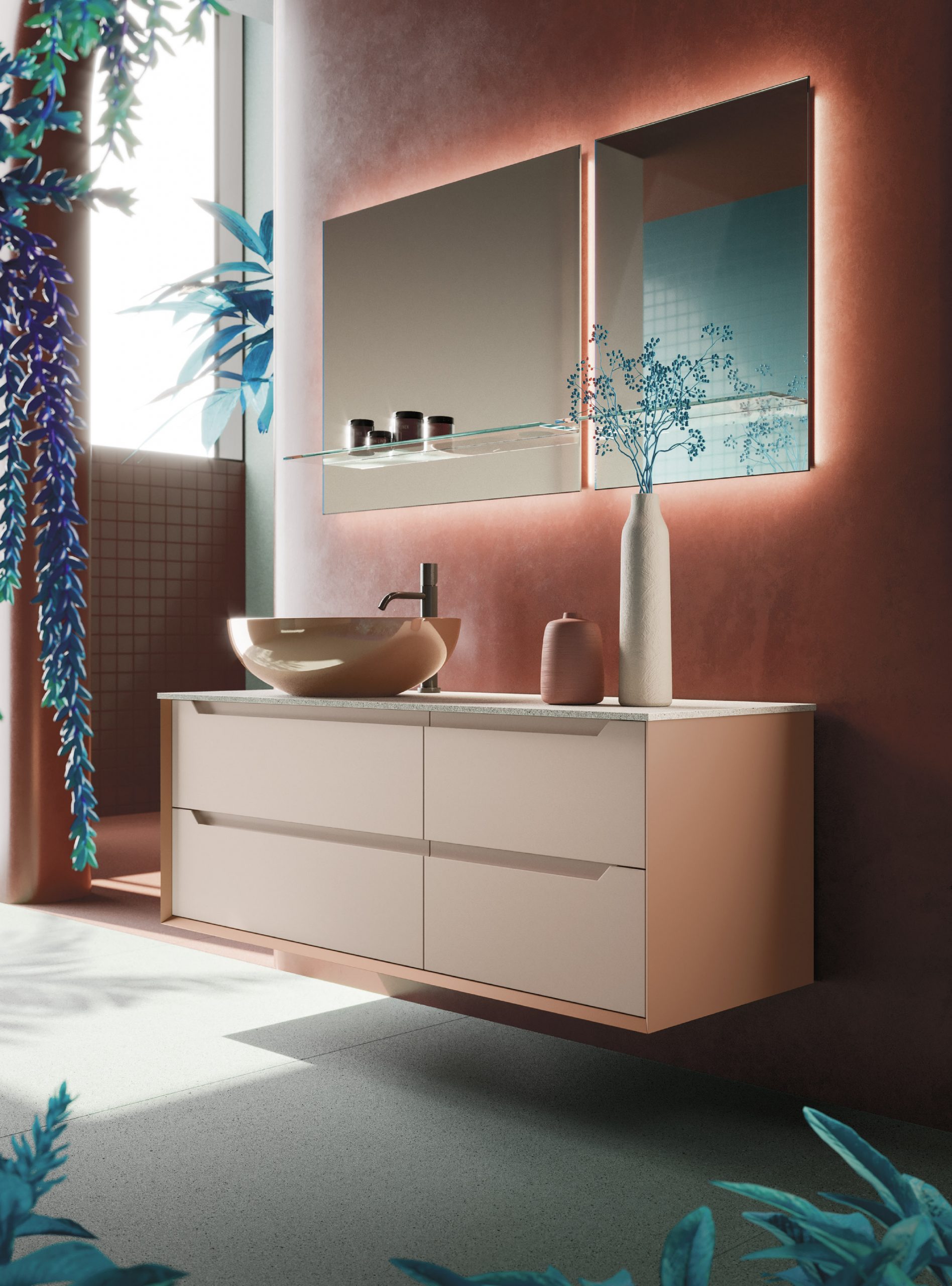 La collezione Master è espressione audace di creatività e innovazione nel mondo dell’arredo bagno. L’anima di Master è delineata dal rigore formale del mobile monoblocco che si fonde armoniosamente con la ricercatezza estetica garantita dal colore, protagonista assoluto del progetto. La particolare lavorazione a 45° aggiunge un tocco di sofisticata eleganza alla maniglia integrata che, oltre ad aggiungere un tocco di stile, garantisce una maggiore praticità d’uso.