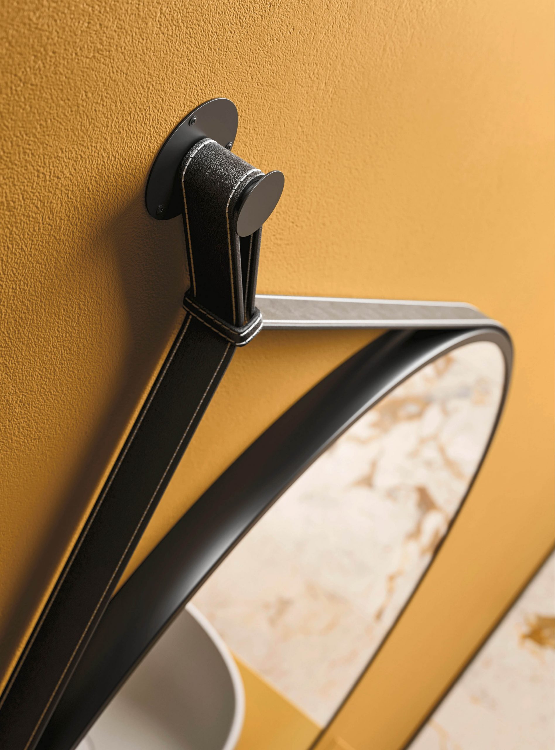 Con telaio in lamiera nera / cinghia in ecopelle nera con supporto metallico nero