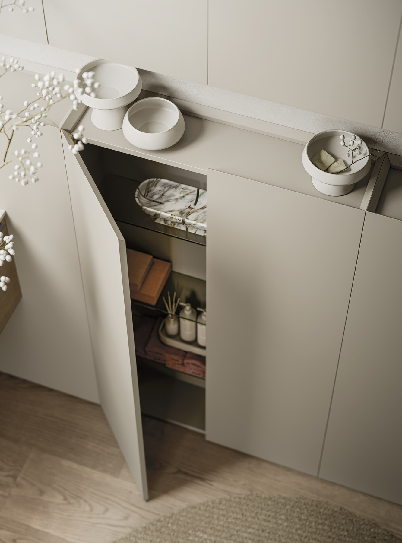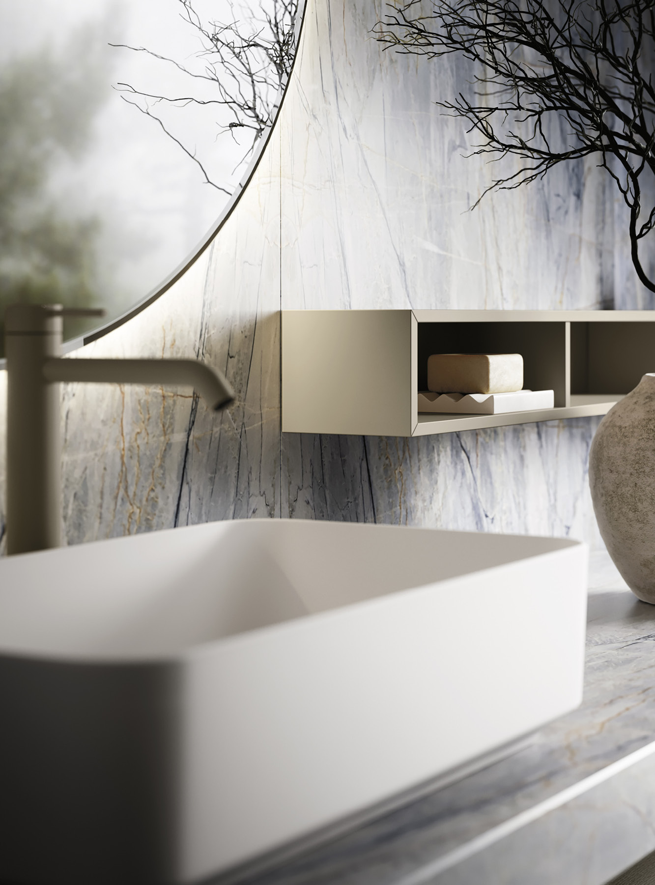 La collezione di arredo bagno Sky esprime essenzialità ed eleganza grazie ai mobili bagno moderni e di design, dalle linee rette e sofisticate. Un progetto dove razionalità ed estetica coincidono e si raffigurano in sapienti composizioni di materiali e volumi, espressione di una profonda cultura dell’arredo. Sky, da sempre caratterizzato dall’anta liscia, amplia la sua collezione ed è ora disponibile in quattro nuove varianti “special”, Sky U, Sky Gola, Sky Ondina e Sky Pregiati, arredando differenti ambienti bagno con una raffinata armonia.